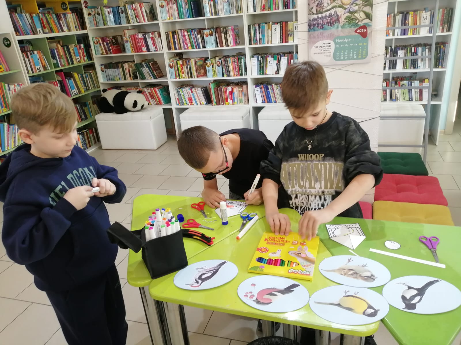 В 17 школе начались школьные каникулы. Где можно провести свободное время? Конечно в библиотеке! Так решили учащиеся школы и их родители. 19 ноября для них состоялся мастер-класс «Зимующие птицы». Дети с удовольствием занимались творчеством и беседовали о зимующих птицах. Ребята узнали, чем можно помочь пернатым и чем их можно подкармливать. В заключении дети раскрасили перо волшебной жар-птицы и загадали сокровенные желания.