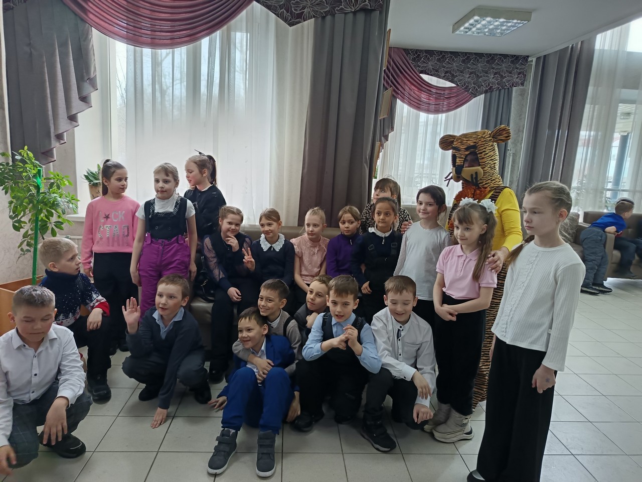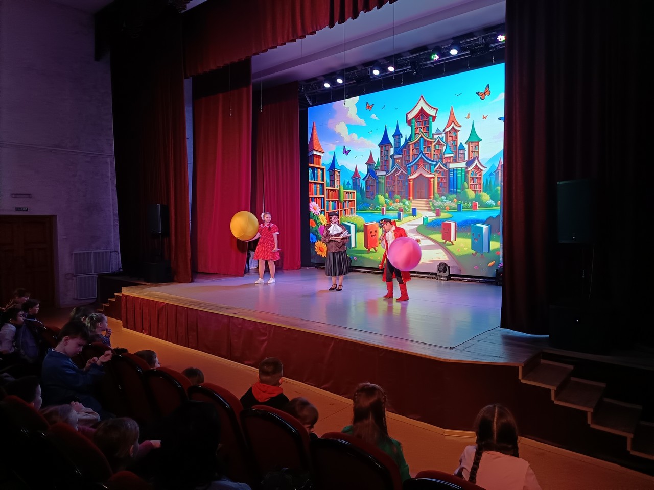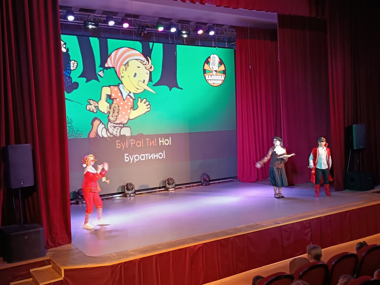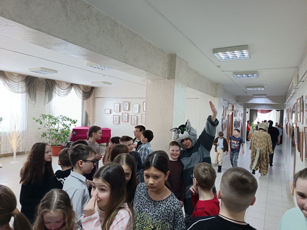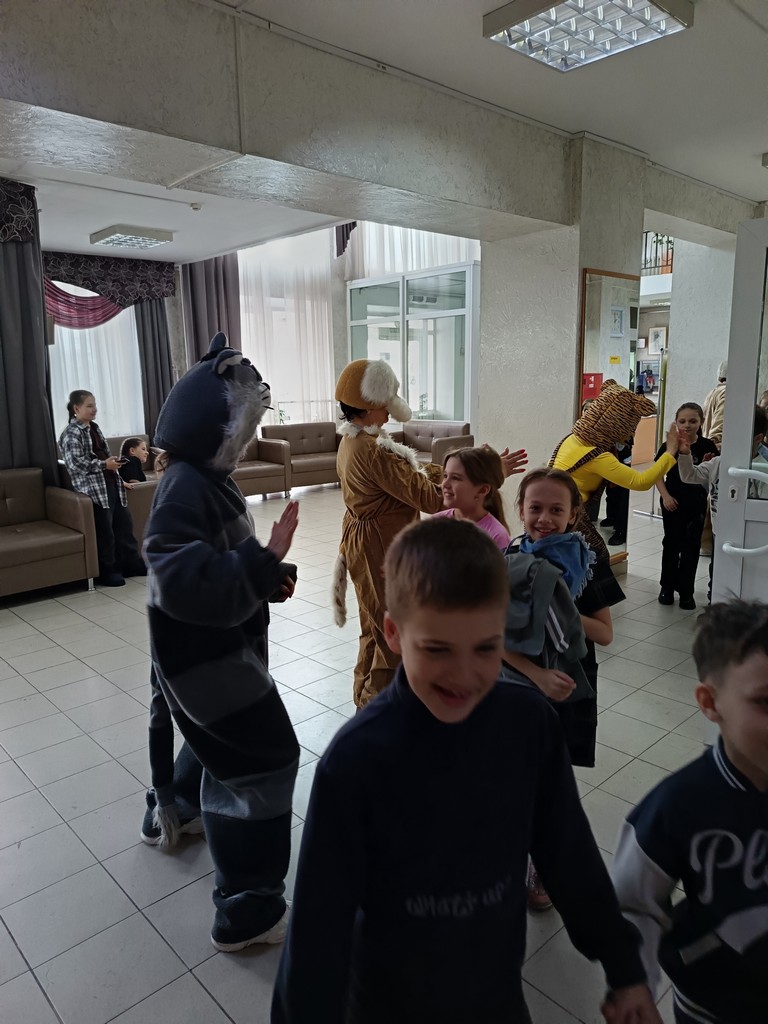 Перед представлением юных гостей встречали лохматые друзья. Затем ребята встретились с героями любимых сказок: Вовкой из тридевятого царства, Пятачком, Буратино, Таней, которая громко плачет из книги Агнии Барто. Сказочные герои проводили со зрителями веселые игры и викторины.