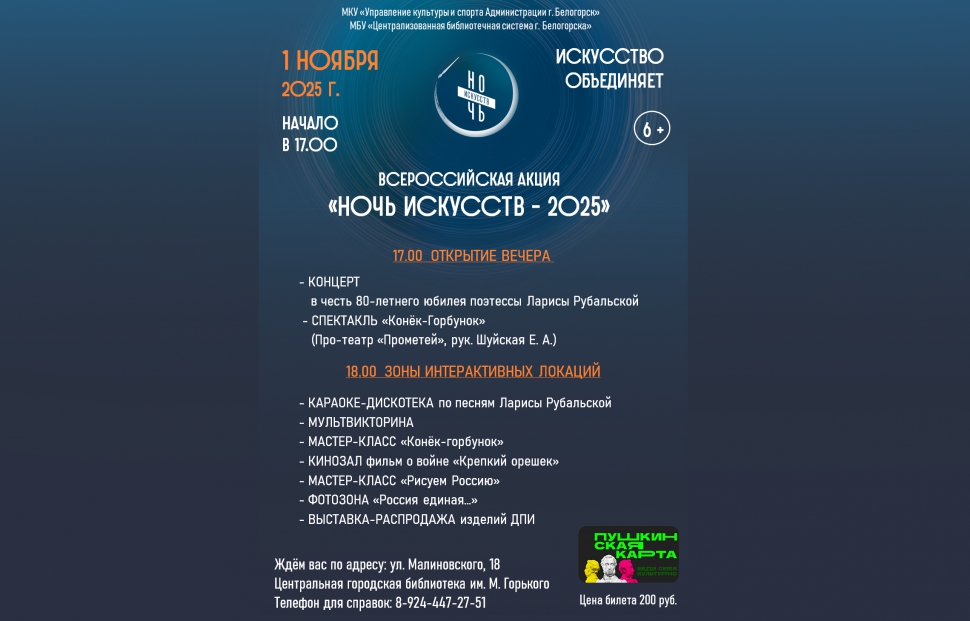 МБУ "ЦБС г.Белогорска" - Приглашаем на Ночь искусств-2025