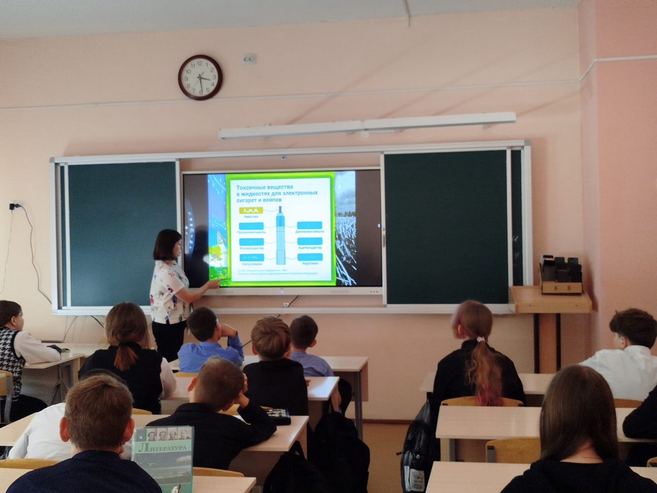 В ходе профилактического часа здоровья «Употребление, злоупотребление, болезнь» школьники познакомились с историей борьбы с вредными привычками в различных странах во все времена, узнали много важной информации об их вреде, разобрали мифы об употреблении табака, алкоголя и наркотиков.