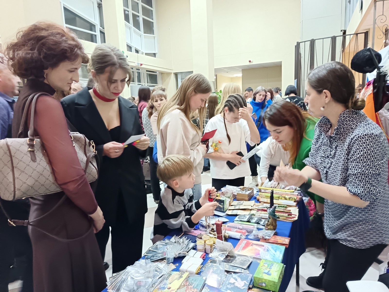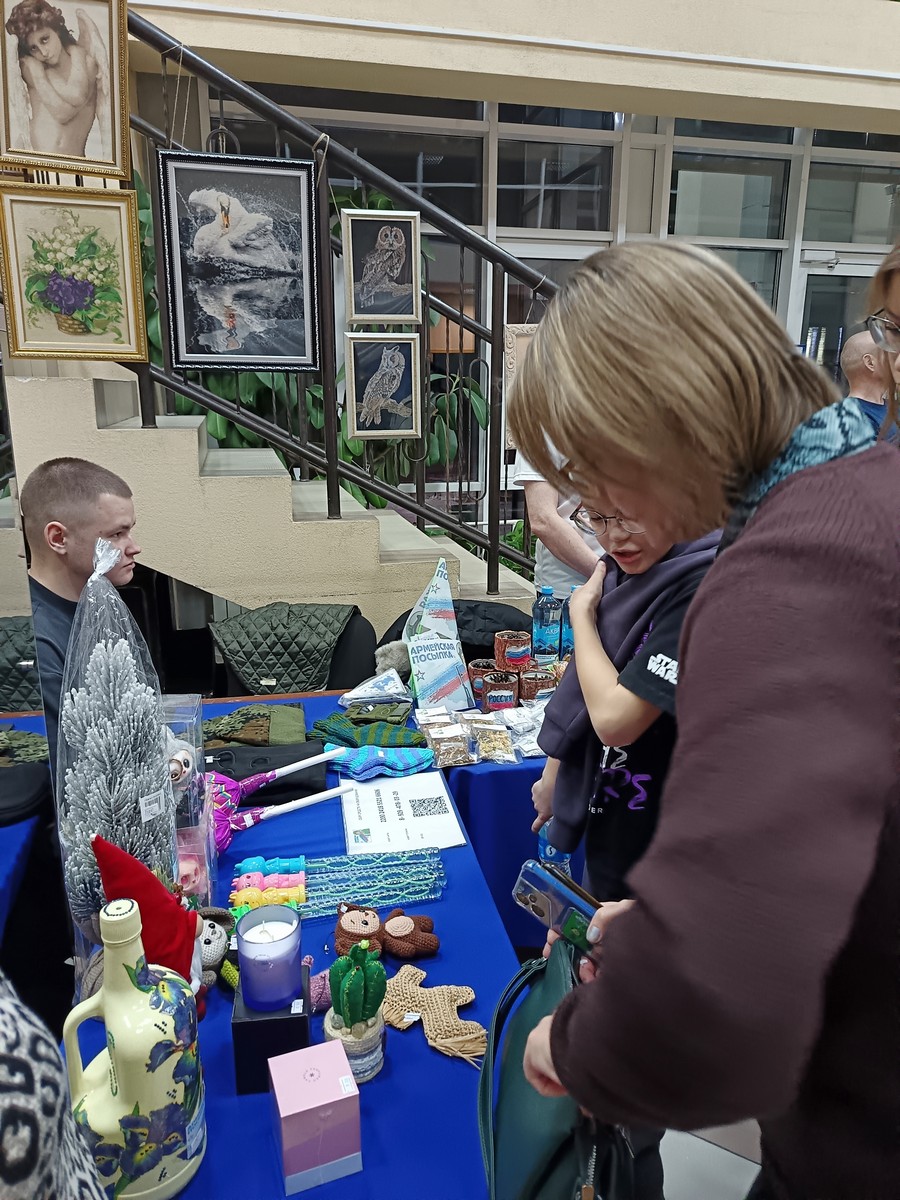 На протяжении всего вечера работали выставки-распродажи украшений, оберегов, декоративных свечей и т.д., а также благотворительная распродажа от волонтёрского движения «Армейская посылка».