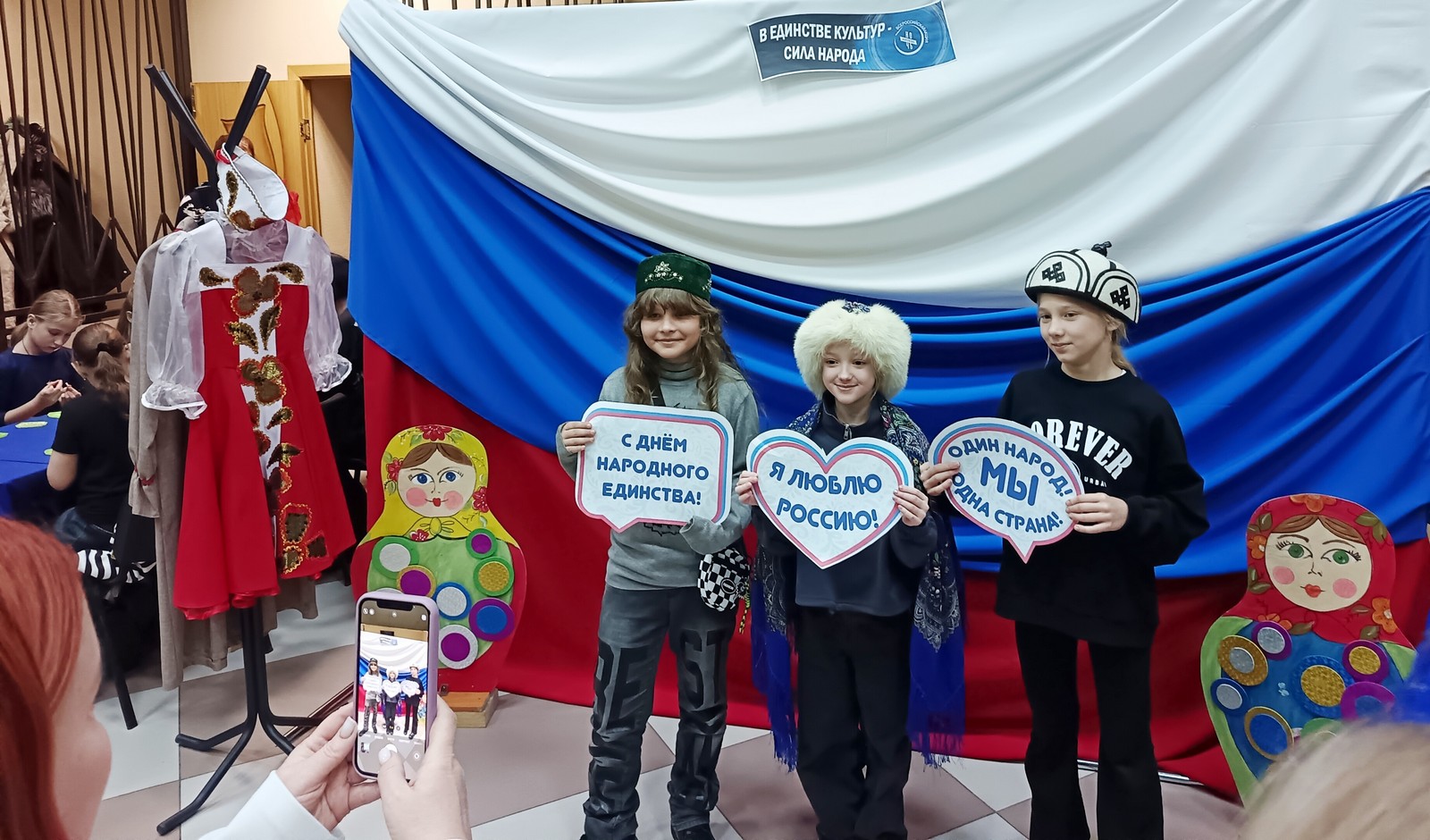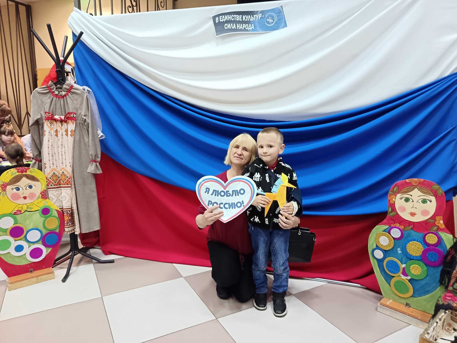 В фотозоне «Россия единая…» гости могли примерить для снимка на память понравившийся национальный головной убор и другую атрибутику.