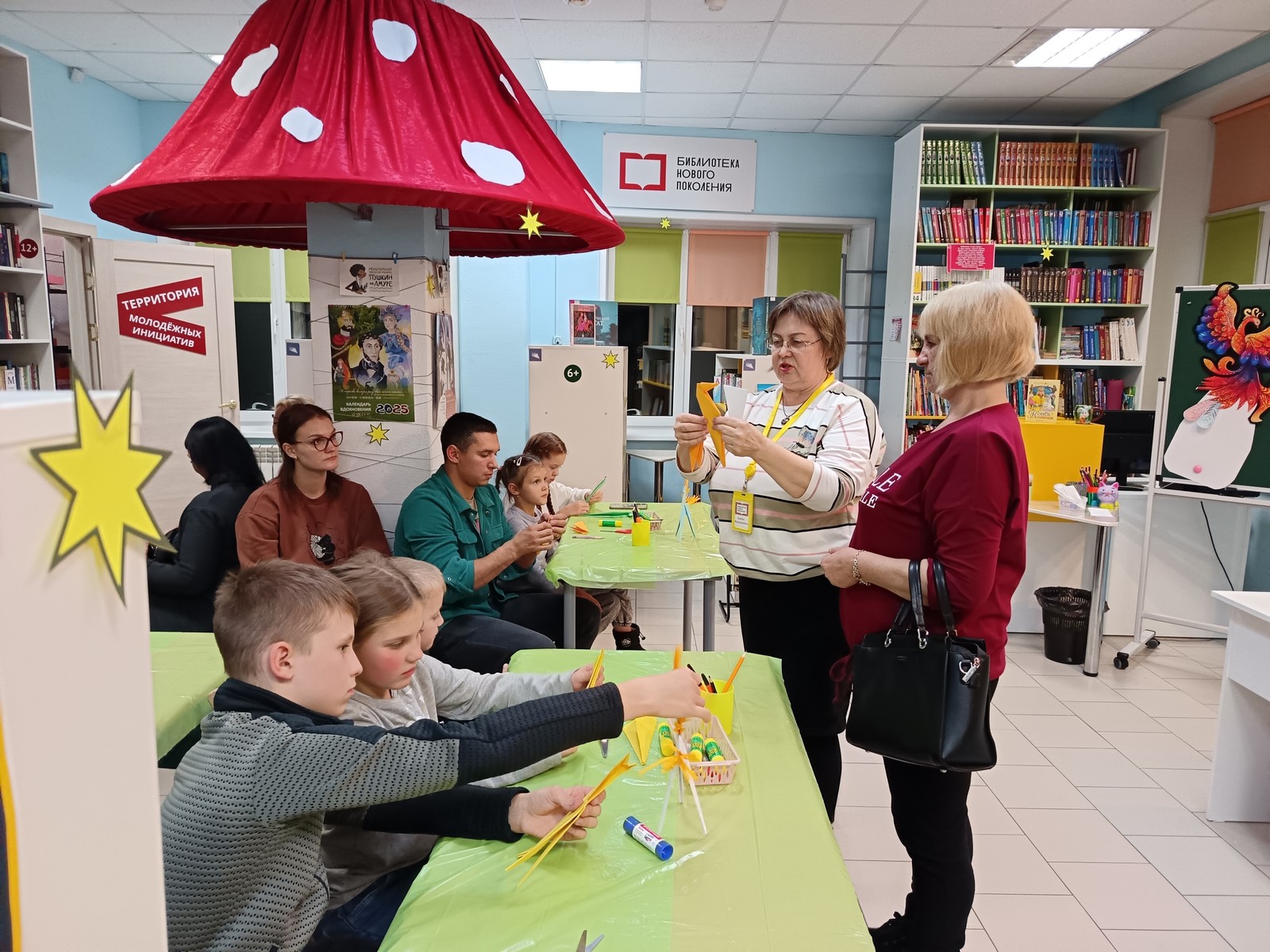 Не менее притягательными оказались площадки для тех, кто любит создавать своими руками. С сотрудником библиотеки на мастер-классе «Конёк-горбунок» делали сказочного коня в технике «Оригами». Летние солнечные ромашковые полянки расцветали на картинах участников мастер-класса по изобразительному искусству «Рисуем Россию» под руководством педагога ДШИ Французовой М. Д. Сделать оберег в виде ангелочка можно было на мастер-классе «Чудо из бисера» под руководством Е. А. Цура.