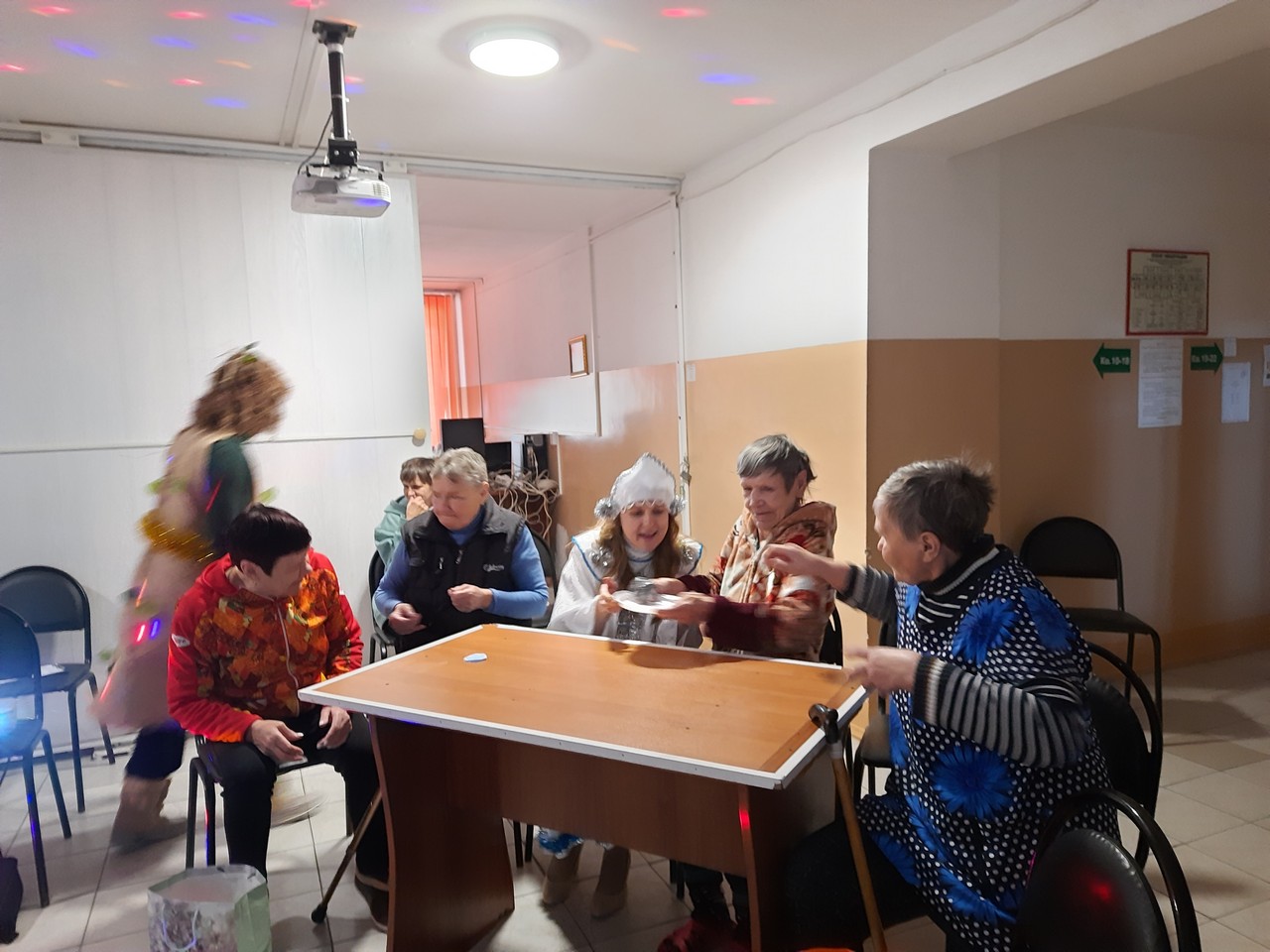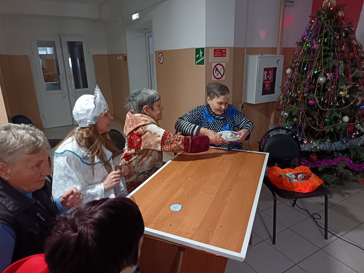 Гости мероприятий стали участниками волшебных событий, где их ждала встреча со сказочными героями и захватывающие новогодние приключения. Озорная Лешая, пытавшаяся помешать Снегурочке проводить вечер, веселила гостей интересными и познавательными играми и конкурсами. Команды «Снежинки» и «Сосульки» в конкурсе «Кручу-верчу» собирали снежки, в игре «Тайна в руках» угадывали наощупь игрушки, а также наряжали импровизированную ёлку-2026, сервировали стол, отгадывали и пели новогодние песни.