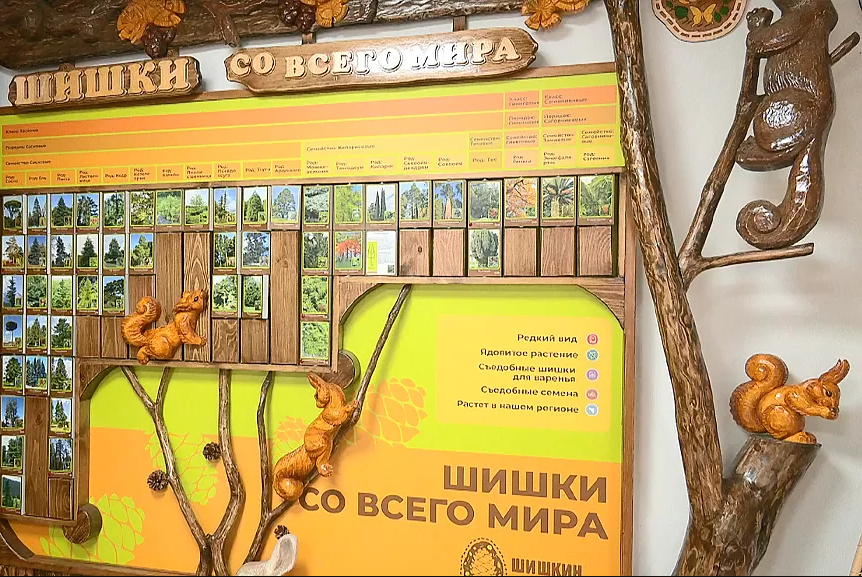 В музее есть познавательная информация о деревьях, растущих в Амурской области и дающих шишки; об истории лесоопытной станции. Здесь проводятся конкурсы поделок из природного материала.