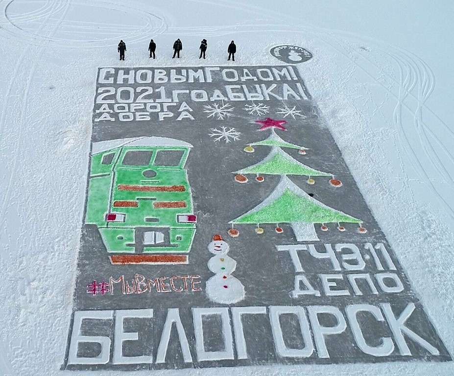 Еще одну ледовую открытку посвятили белогорцы Новому 2026 году. Активные жители города создали цветную композицию, размером 35 на 25 метров, с изображением «2026» и символом наступающего года. В мероприятии приняли участие корпоративные волонтёры ОАО «РЖД», члены Общественного совета города, представители Совета отцов, преподаватели и студенты АМЦФПК.