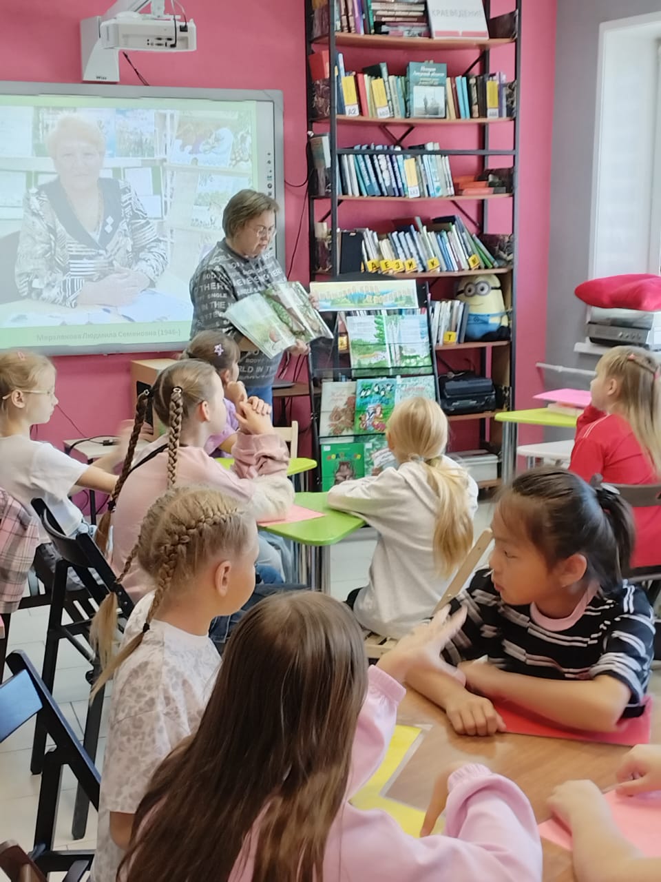 Особое внимание на данной встрече было уделено творчеству Людмилы Семеновны Мерзляковой, талантливому амурскому автору, знатоку природы родного края. Школьники познакомились с её замечательными книгами для детей: «Чучик», «Медвежья услуга», «Мои друзья», «Большие лесные новости», «Живая радуга» и «Песня о Норском заповеднике». Книги Людмилы Мерзляковой написаны не только прозаическим языком, но и стихотворным. Рисунки в книгах яркие, сочные, правдивые. Герои рассказов и стихов красочно проиллюстрированы самим автором.