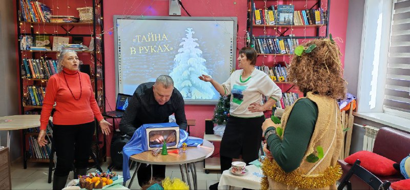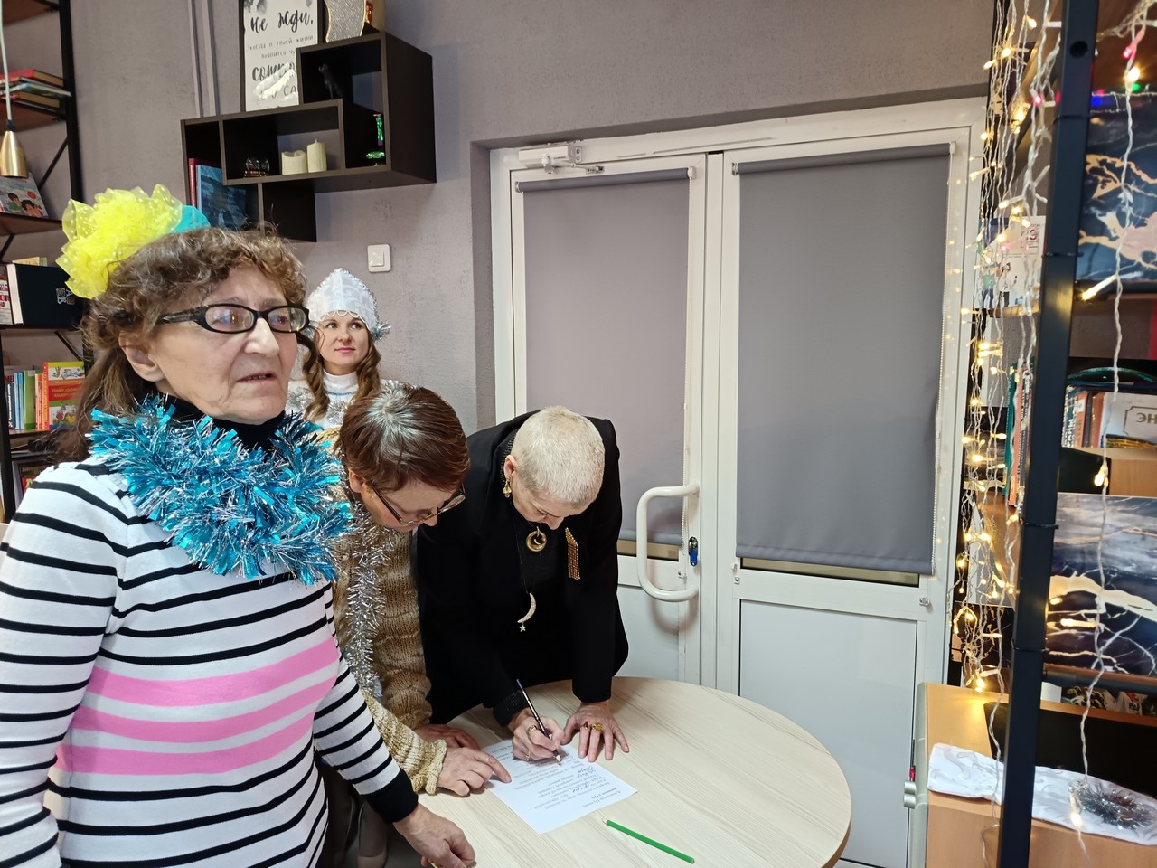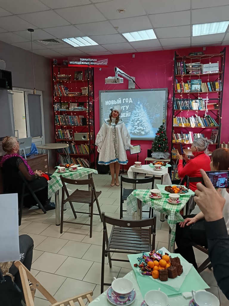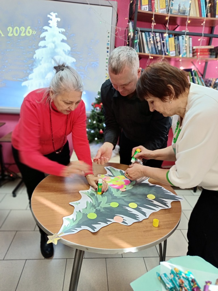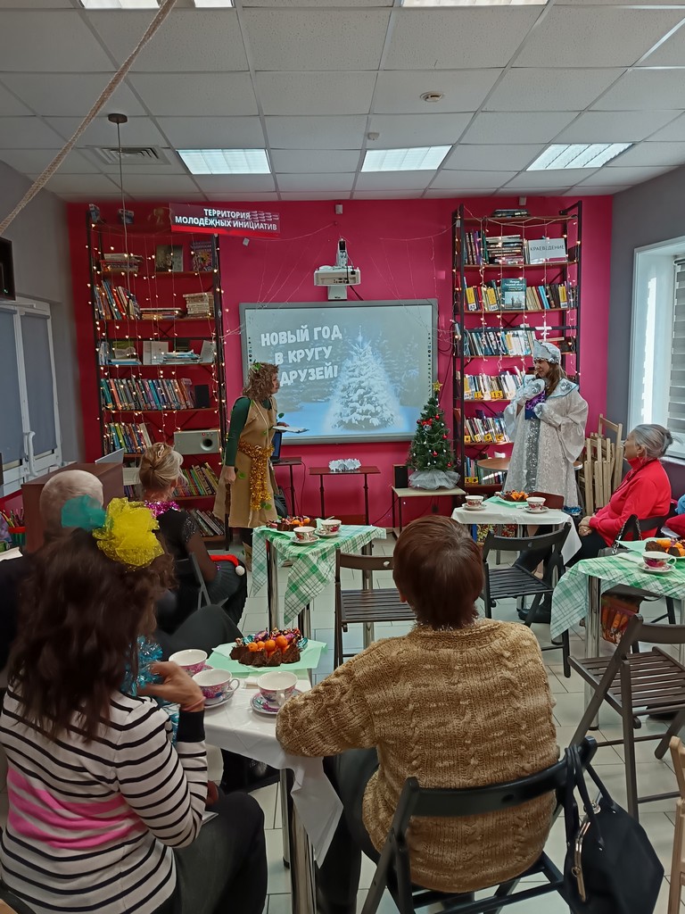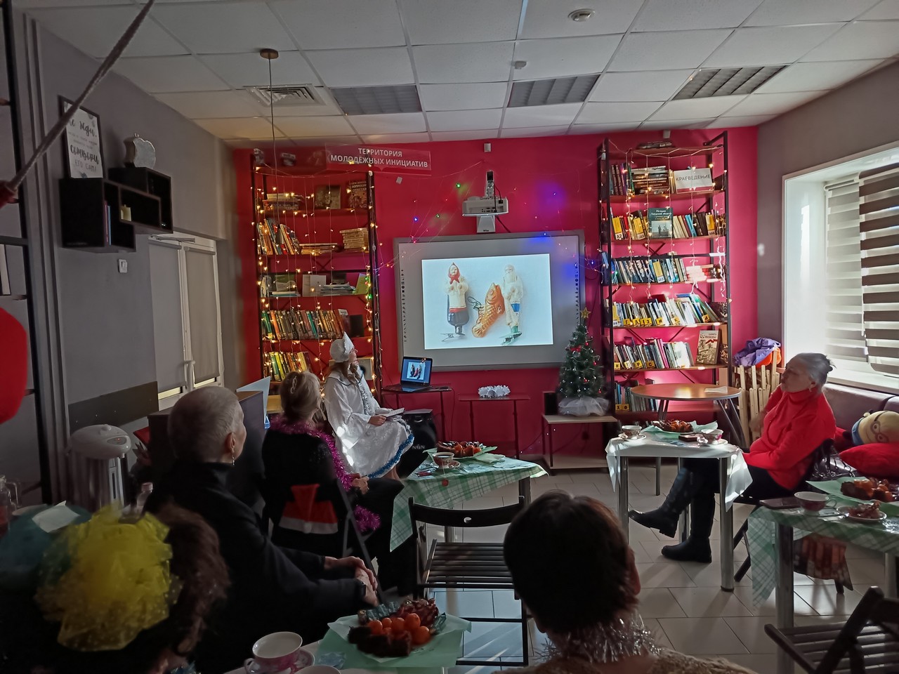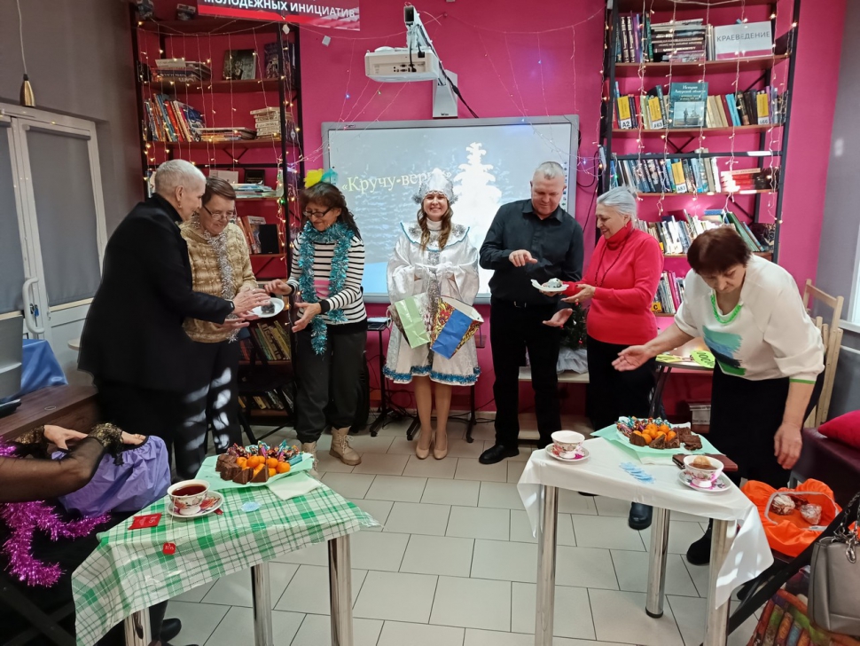 Собравшиеся на праздничной программе «Новый год в кругу друзей» вместе со Снегурочкой и Лешей совершили виртуальное путешествие в мир новогодних елочных украшений советского периода. Активно участвовали в конкурсах «5 минут – это много или мало», «Кручу-верчу», «Ёлка-2026», «Гости на пороге», «Спой, светик, не стыдись» и др. Вспоминали свои семейные обычаи и традиции отмечать самый главный праздник в году. На протяжении всей встречи, параллельно с чаепитием и угощениями, царили веселье, шутки и смех.