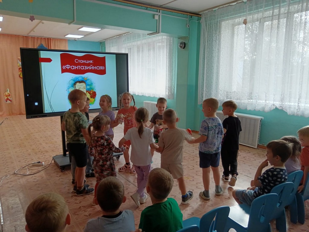А на станции «Фантазийная» дети самим стали сказочниками и сочинили свою сказку при помощи обычных предметов.