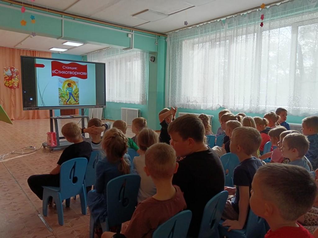 В ходе мероприятия ребята отправились в путешествие по сказкам Дж. Родари на сказочном поезде «Голубая стрела» с посещением различных станций.