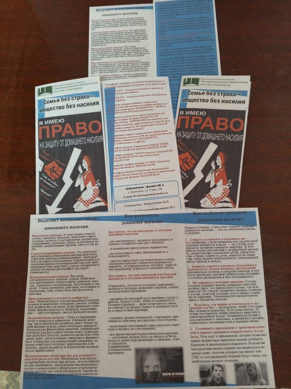 Каждый участник акции получил буклет, в котором даны понятия и типы домашнего насилия, а также рекомендации, что делать если вы или ваши знакомые подвергаетесь домашнему насилию. Куда обращаться и кому звонить.