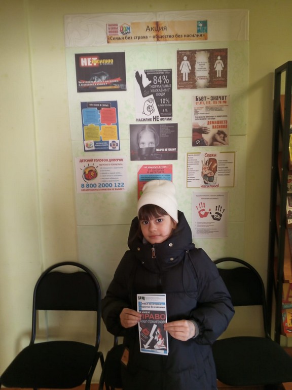 С целью профилактики домашнего насилия в семье с 18 по 28 ноября 2025 года в библиотеке – филиале №1 проходит акция «Семья без страха – общество без насилия». В рамках акции была проведена профилактическая беседа «Семья без страха – общество без насилия», где библиотекарь рассказала о значении и различии понятий «насилие» и «агрессия», «жестокость» и «прощение» и т. д.
