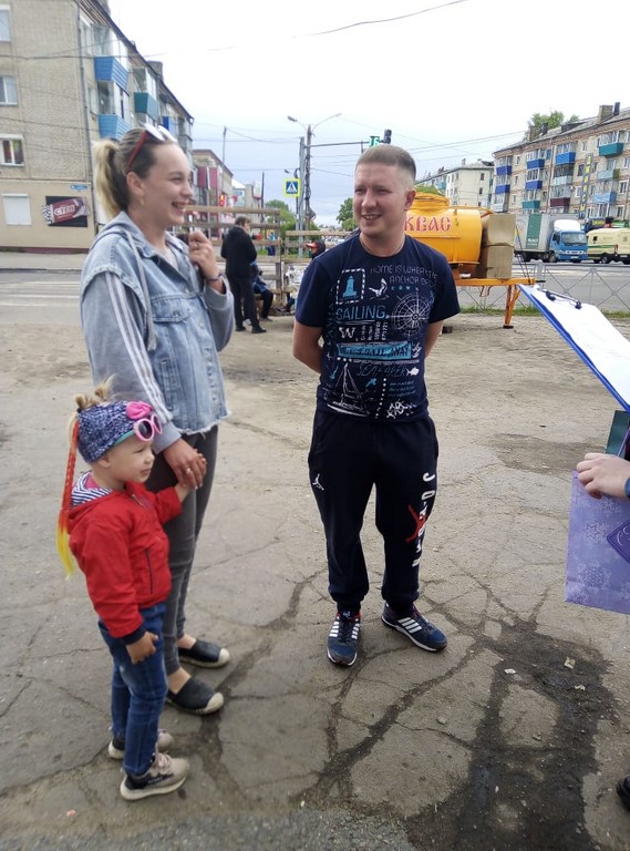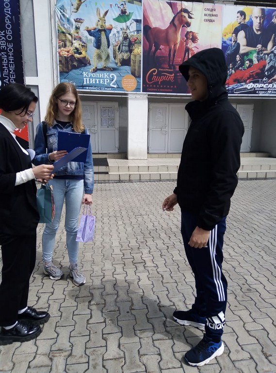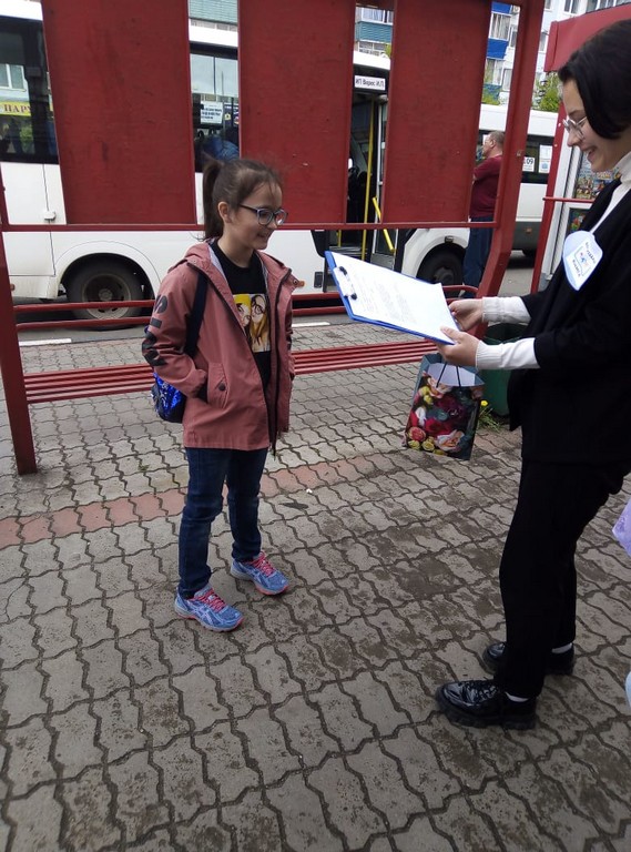 Стартовали по заранее разработанному маршруту, приглашая жителей города ответить на вопросы мини-викторины. Условия были просты: ответил правильно – получил в подарок сувенир.