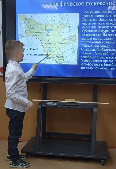 12 апреля на краеведческом часе «Путешествие по Амурской области» учащиеся 4 «А» класса МАОУ СШ №17 рассуждали о том, что значит малая родина, в чем должна проявляться ответственность перед ней.