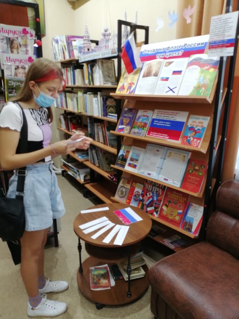 В начале августа в детско-юношеском отделе центральной городской библиотеки была организована книжная выставка «Откуда на флаге России три цвета». Из книг книжной выставки юные читатели узнают интересные факты из истории появления российского флага, о том, что символизирует каждый его цвет, на каких зданиях он должен присутствовать, в каких случаях его торжественно поднимают, почему у каждого государства свой флаг. Каждый посетитель библиотеки может не только познакомиться с красочно - иллюстрированными книгами из выставки, но и поучаствовать в викторине «Российский флаг державный», ощутить себя частью великой и сильной державы.