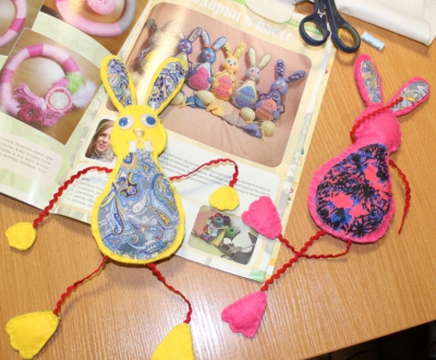 2 апреля 2022 года в клубе выходного дня «Девицы-мастерицы» вновь встретились в читальном зале сектора организации досуга, ведь приближаются великий христианский праздник, надо тщательно подготовиться к этому событию, сделать своим близким подарки к Пасхе. Сотрудник библиотеки научил простому способу шить зайцев из фетра, а с помощью ниток мулине вышивать декоративные узоры. На следующем занятии ребята будут осваивать новую технику - лепку из пластики объёмных пасхальных яиц.