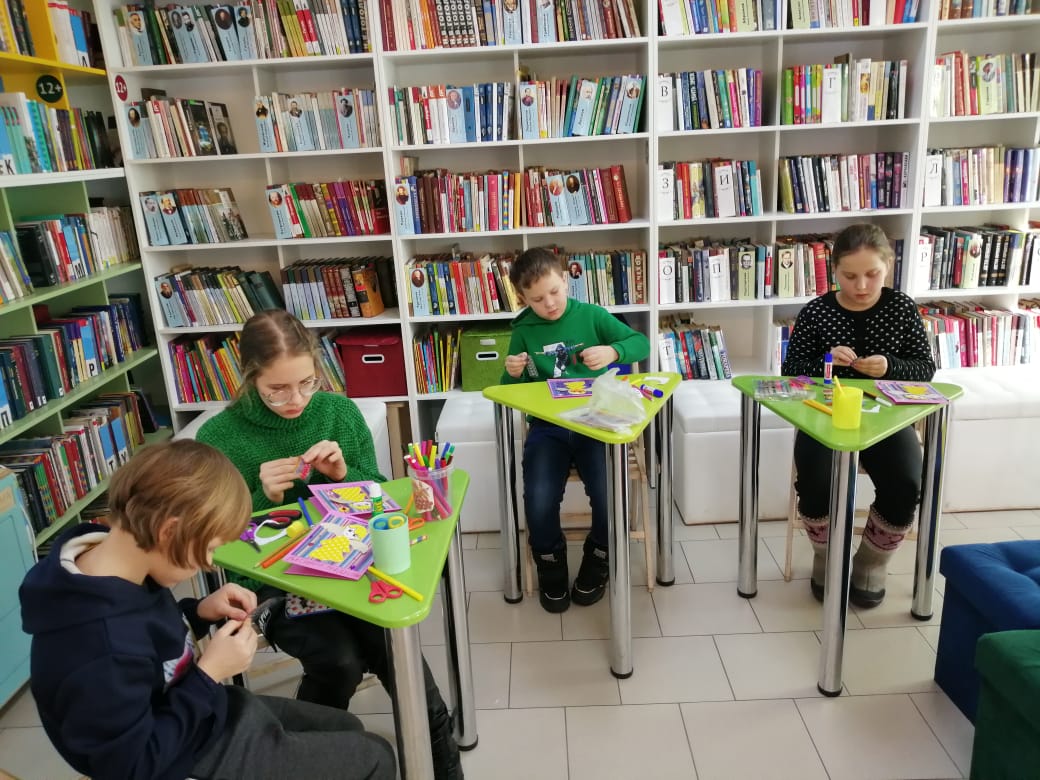 В канун Рождества в детско-юношеском отделе ЦГБ для детей была организована творческая мастерская «Рождественская открытка». Ребятам было предложено приготовить своими руками рождественскую открытку из картона, цветной бумаги, страз и украшений. В ходе занятия у каждого из ребят получилась замечательная открытка с теплыми поздравлениями для своих близких и друзей.