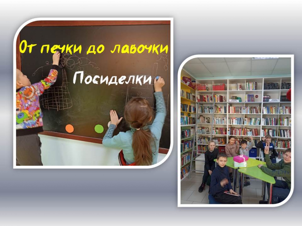 5 января 2023 года сотрудники детско - юношеского отдела городской библиотеки им. М. Горького организовали для своих читателей посиделки «От печки до лавочки». Ребята побывали в далеком-далеком прошлом и посмотрели как жили - не тужили наши прабабушки и прадедушки, как отмечали Новый год и Рождество. Затем поиграли в народные игры, узнали для чего люди, использовали в своих жилищах русскую печь и старинные предметы быта, познакомились с новыми словами «истоба», «истопка» и их значением, посмотрели отрывки из фильмов и мультфильмов.