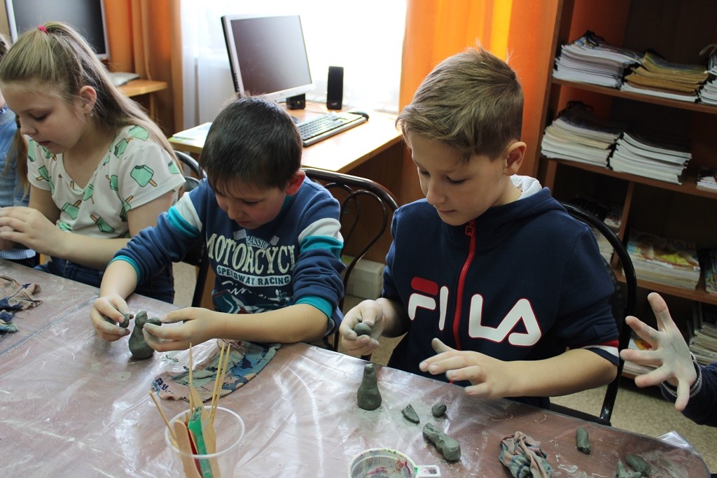 27 марта 2019 года в рамках Недели деткой и юношеской книги сотрудники ДЮО центральной городской библиотеки провели мероприятие для начальных классов по народному творчеству «Сказку сделаем из глины».