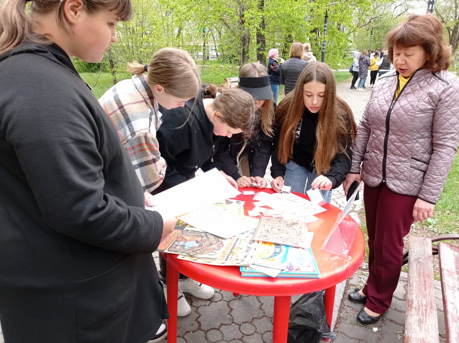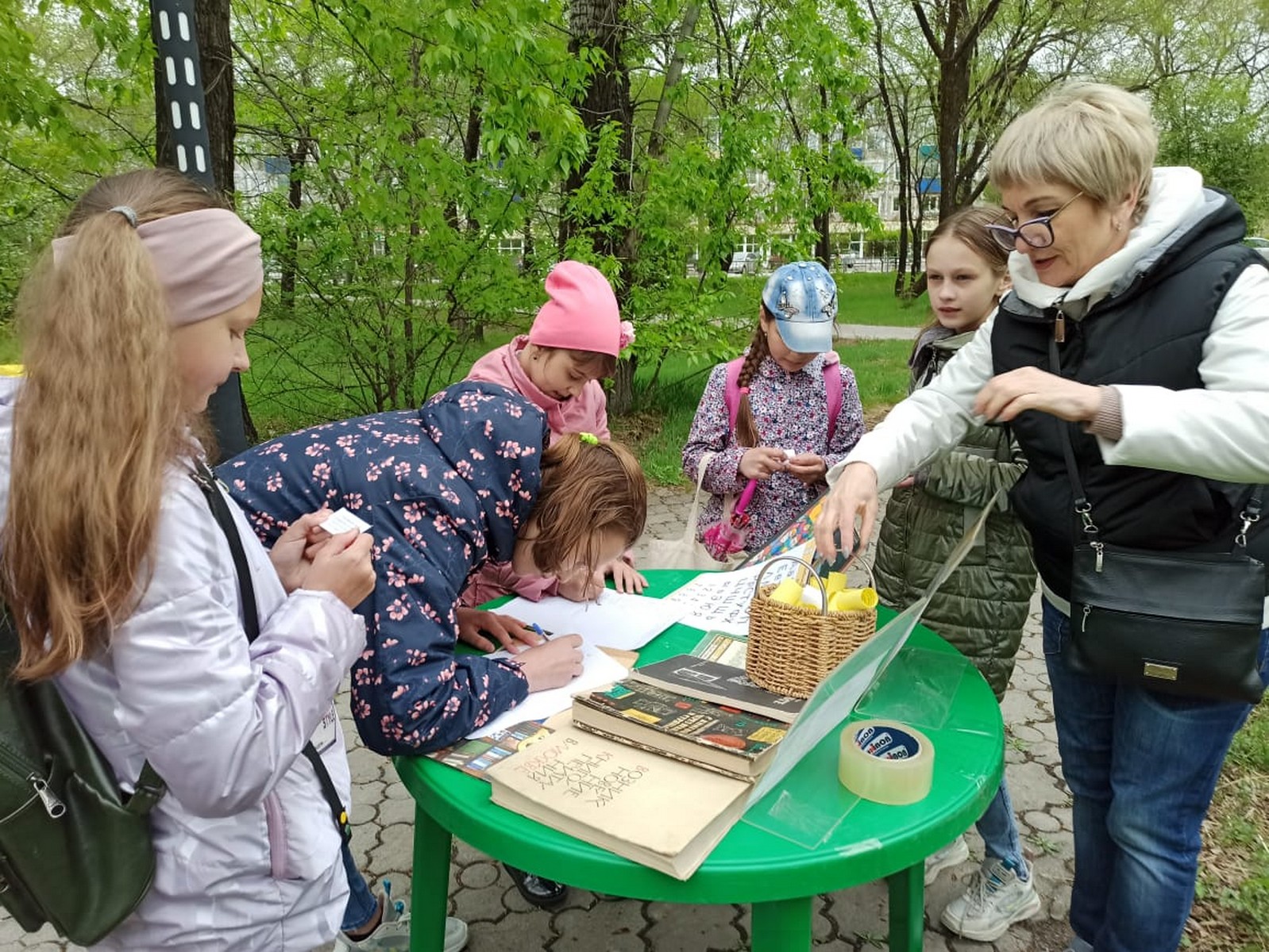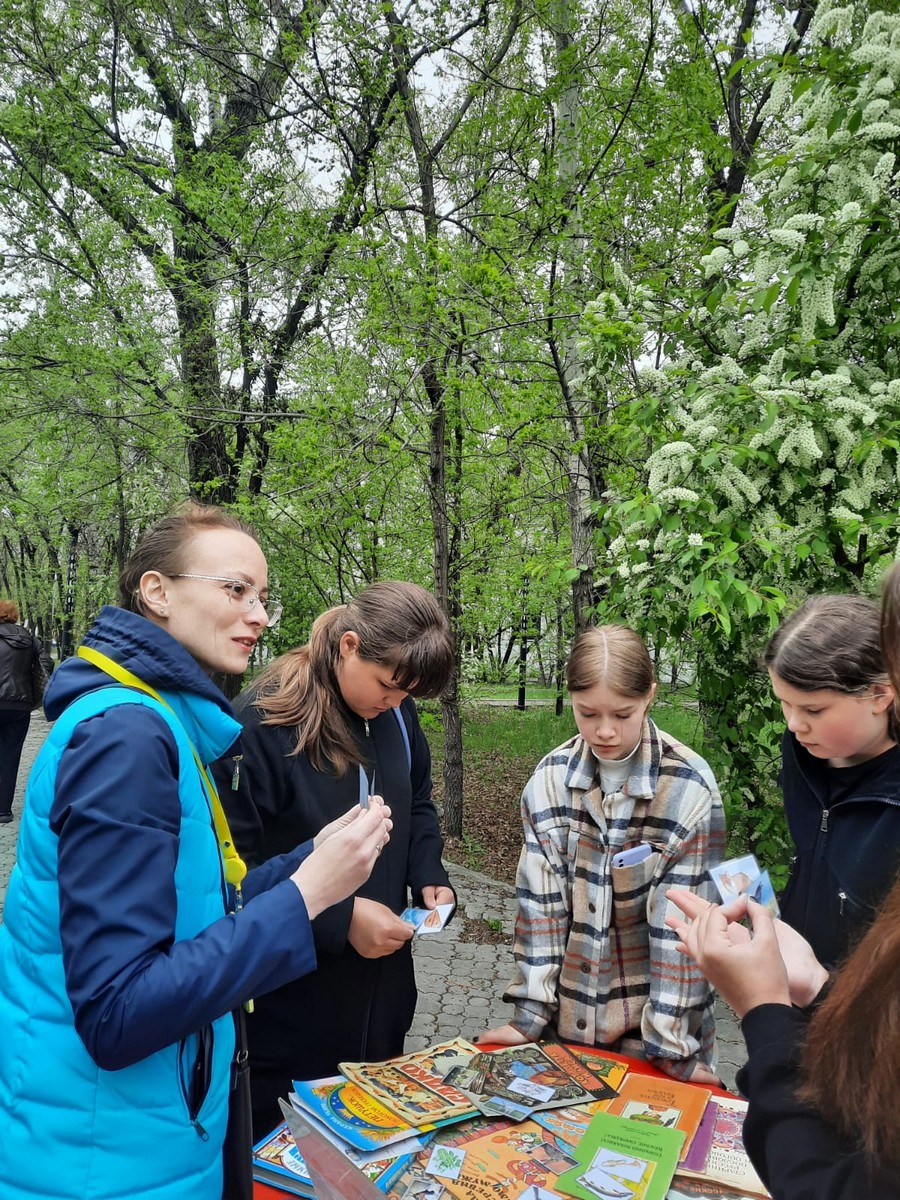 На станции «Берестяные грамоты» – узнали о способе записывать и сохранять знания в Древней Руси, где использовали бересту (берёзовая кора). Желающие выполняли задания, связанные с русским фольклором: собрали пословицы, читали небылицы, потешки, заклички, отгадывали загадки.
