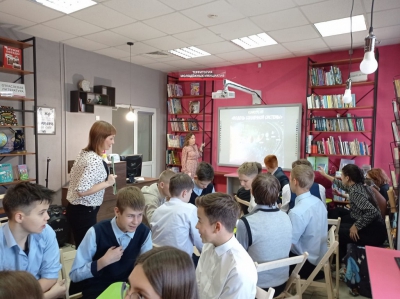 7 октября в рамках Десятилетия науки и технологий, объявленного указом Президента в апреле 2022 года, в модельной Центральной городской библиотеке им. М. Горького был проведён занимательный урок «Наука без скуки» для учащихся 9 класса МАОУ «Школа № 200».