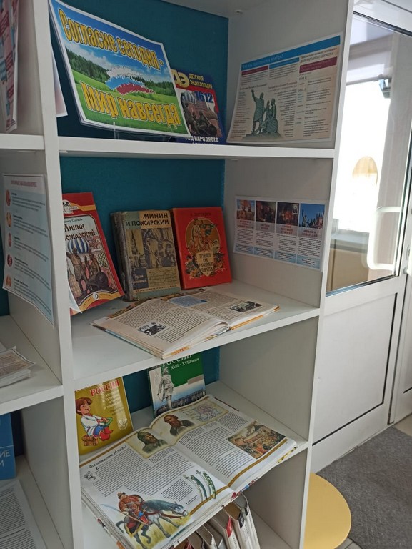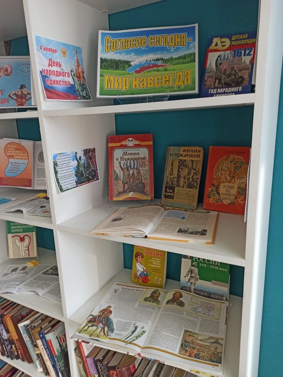 В модельной Центральной городской библиотеке им. М. Горького была оформлена книжно-иллюстративная выставка «Согласие сегодня – мир навсегда». На выставке были представлены книги по истории России, посвященные теме народного единства, а также книги о жизни и деятельности Кузьмы Минина и Дмитрия Пожарского, о народном ополчении, о событиях Смутного времени.