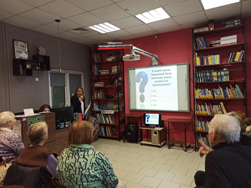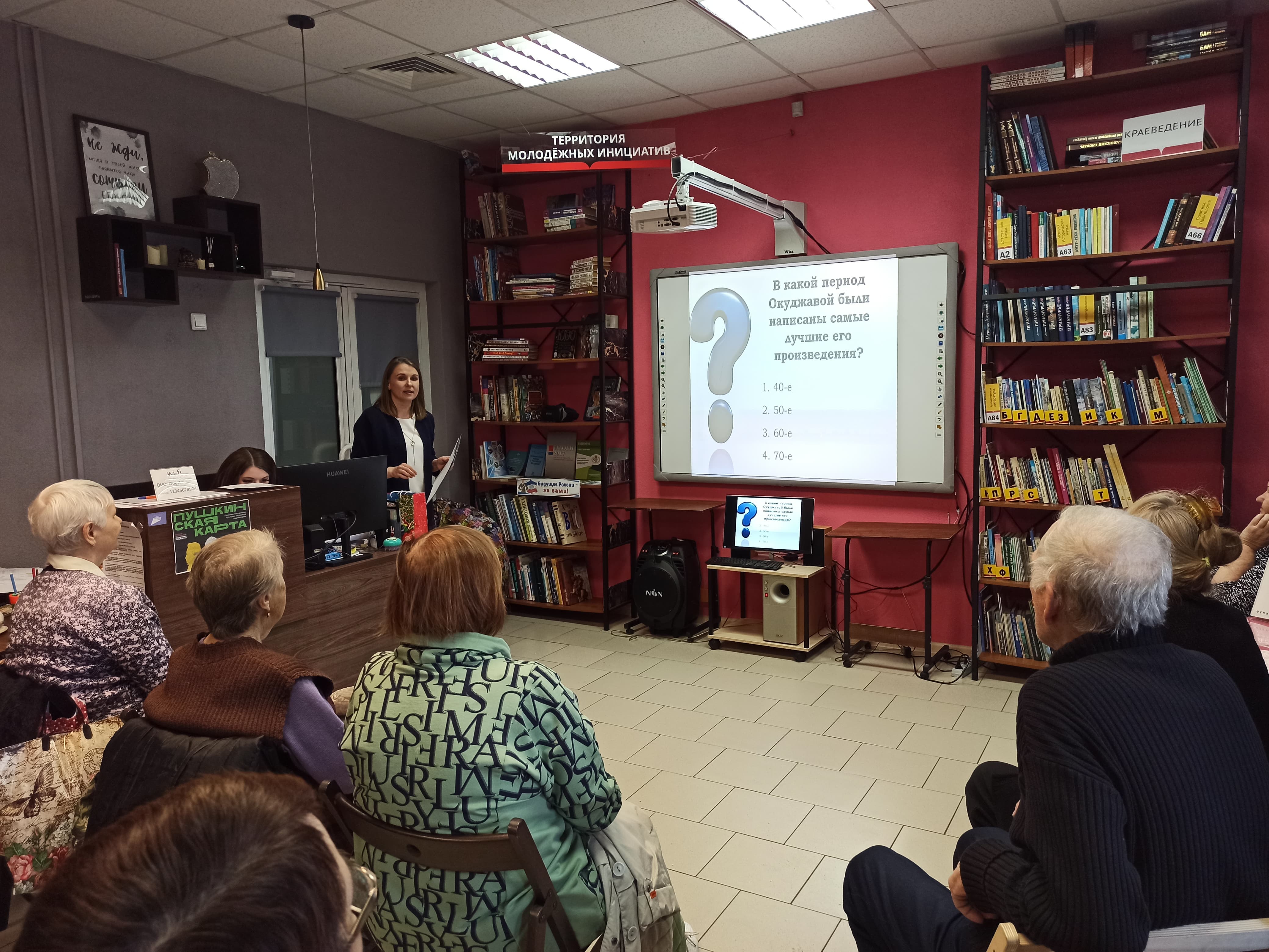 Литературно - музыкальная гостиная «Поющий поэт», посвященная 100-летию со дня рождения Булата Окуджавы, состоялась в центральной городской библиотеке им. М. Горького 18 мая. Читателей познакомили с жизнью и творчеством известного российского поэта, барда, композитора, прозаика и сценариста. На встрече прозвучали стихи поэта, которые впечатляют своей простотой и мудростью.