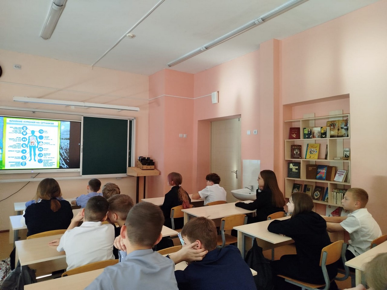 В ходе профилактического часа здоровья «Употребление, злоупотребление, болезнь» школьники познакомились с историей борьбы с вредными привычками в различных странах во все времена, узнали много важной информации об их вреде, разобрали мифы об употреблении табака, алкоголя и наркотиков.