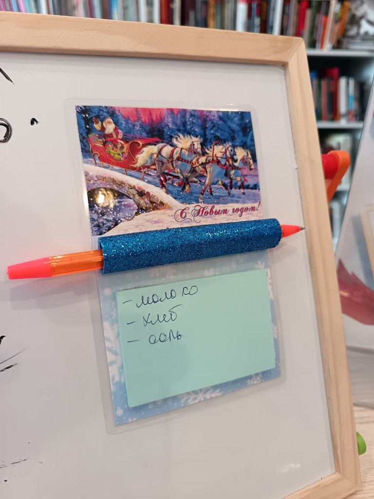 Читатели разных поколений с удовольствием и детским азартом мастерили удобную и полезную вещь – магнит с блокнотом и креплением для ручки. На каждом магните изображён Дед Мороз, который подскажет: «Запиши, а то забудешь!».