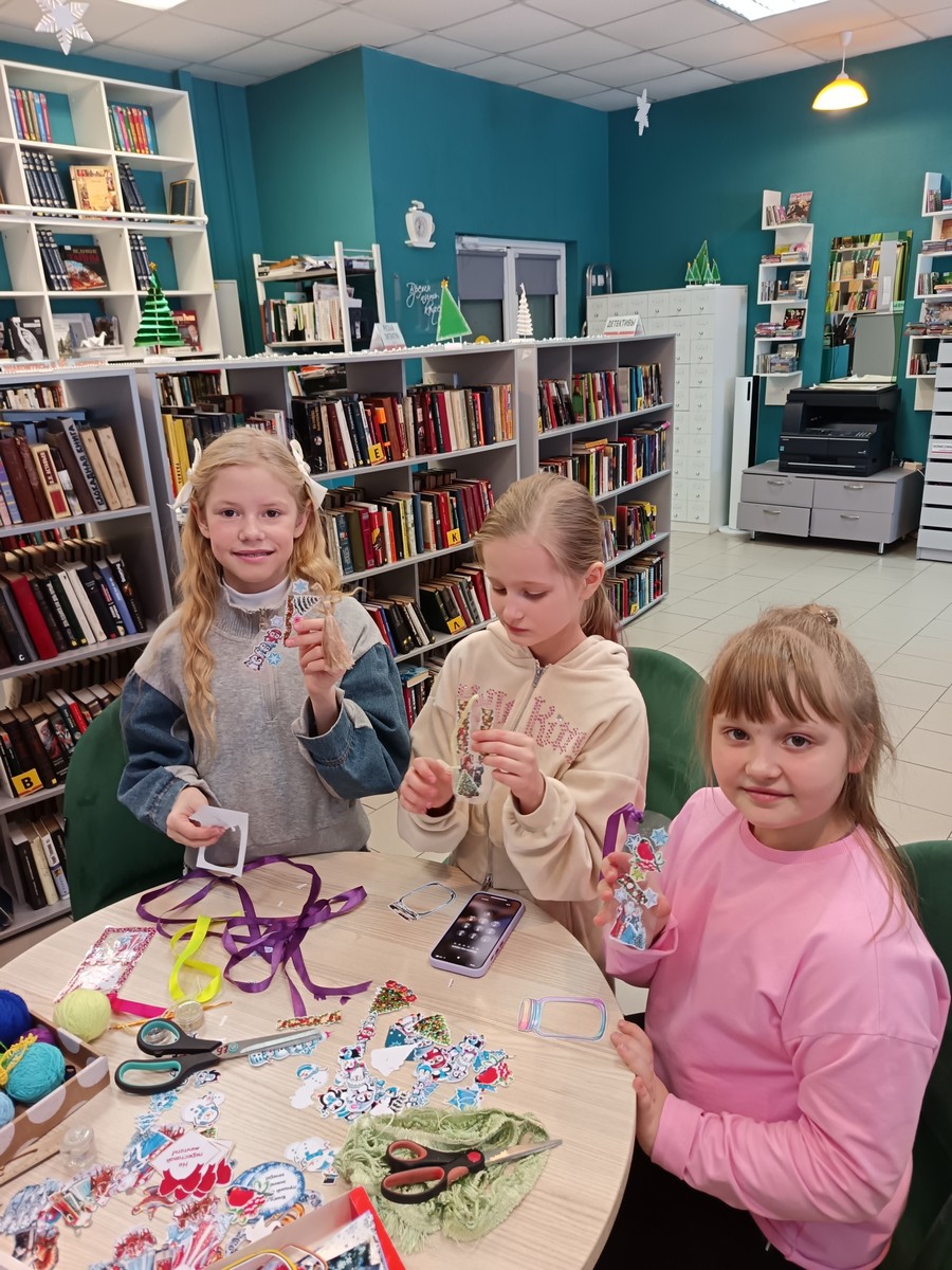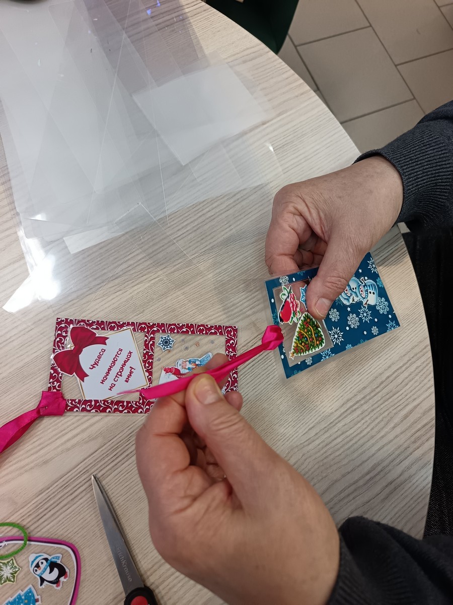 9 и 10 января в течение дня читатели принимали участие в мастер-классе «Новогодняя закладка».