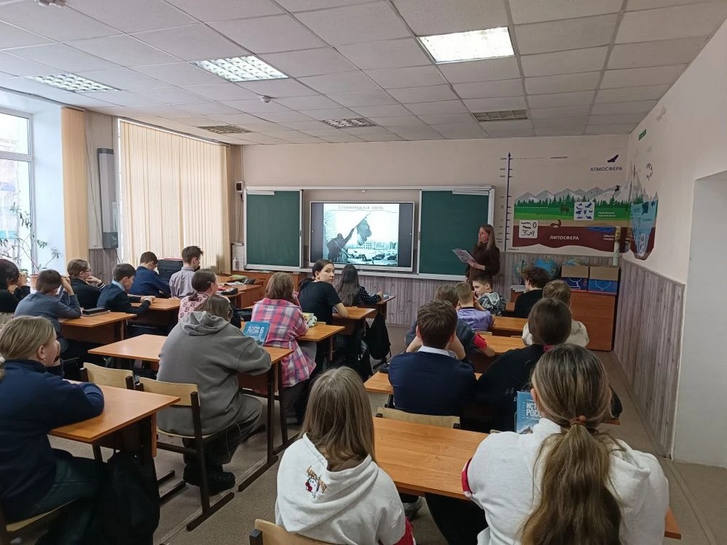 К этой дате, в МАОУ «Школа №10 г. Белогорск» для обучающихся средних классов центральной городской библиотекой им. М. Горького было проведено мероприятие «Сталинградский перелом». Ребята узнали о ключевых событиях битвы, героических подвигах защитников города, боях за Мамаев курган и пленении фельдмаршала Паулюса. В конце мероприятия прошла интерактивная игра, которая позволила детям закрепить пройденный материал, проявить свои интеллектуальные способности и логику.