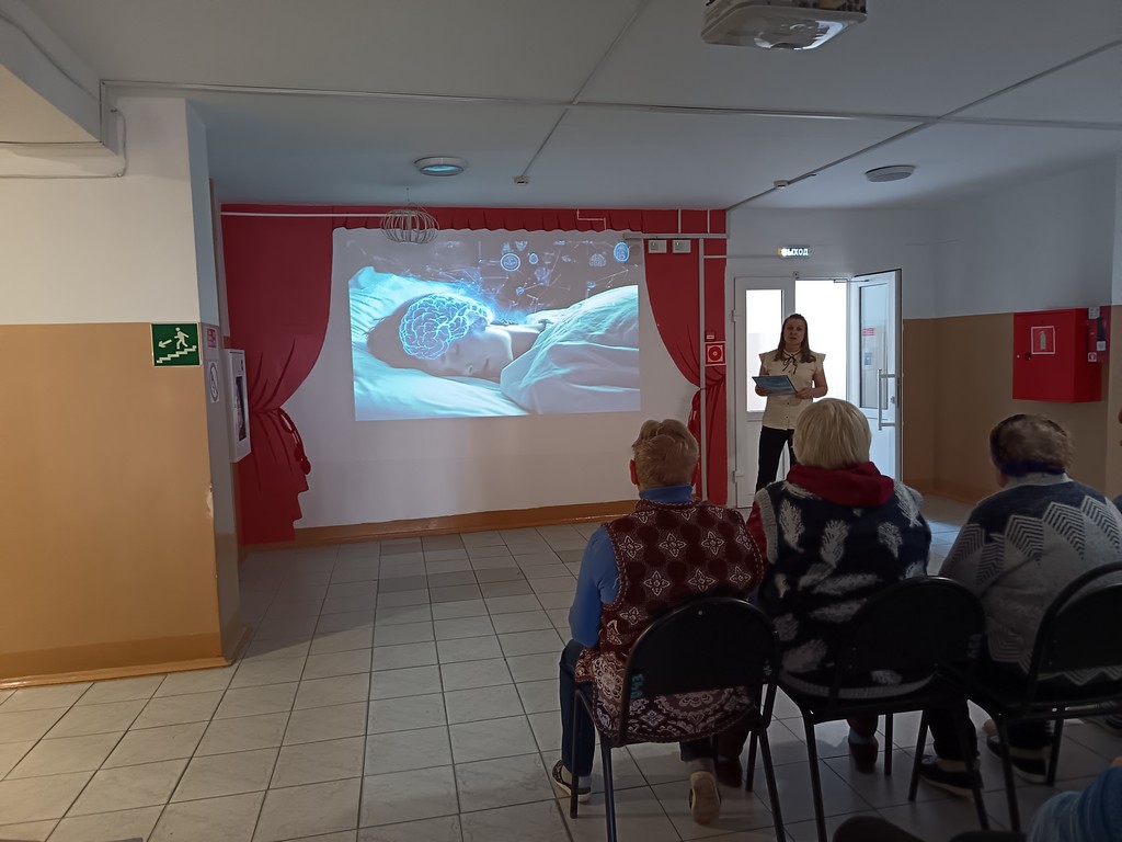 Библиотекарь модельной библиотеки рассказала о фазах сна и их особенностях, о причинах и видах нарушений сна, последствиях бессонницы и методах самопомощи. Она подчеркнула важность индивидуального подхода к лечению различных нарушений сна, дала общие рекомендации для улучшения сна.