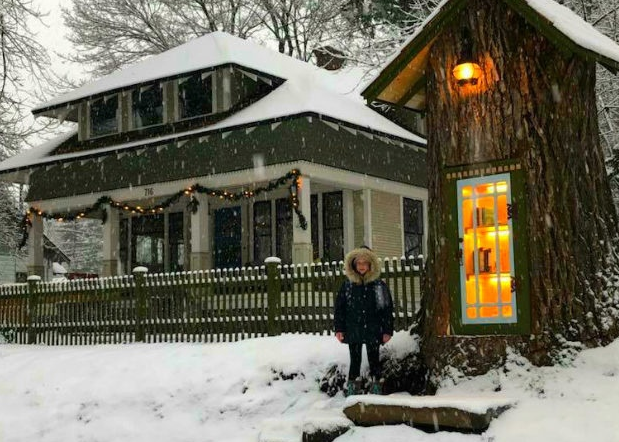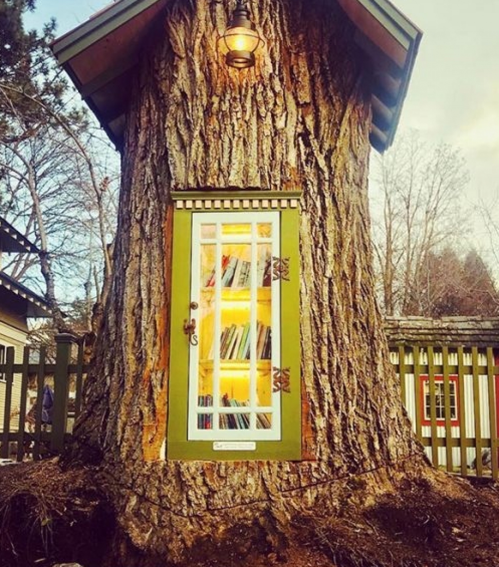 Инициатива Little Free Library способствует распространению бесплатных уличных библиотек. Зимой стало на один книжный домик больше — в Коур-д’Ален, штат Айдахо библиотекарша Шарали Армитадж Говард создала его из 110-летнего дерева.