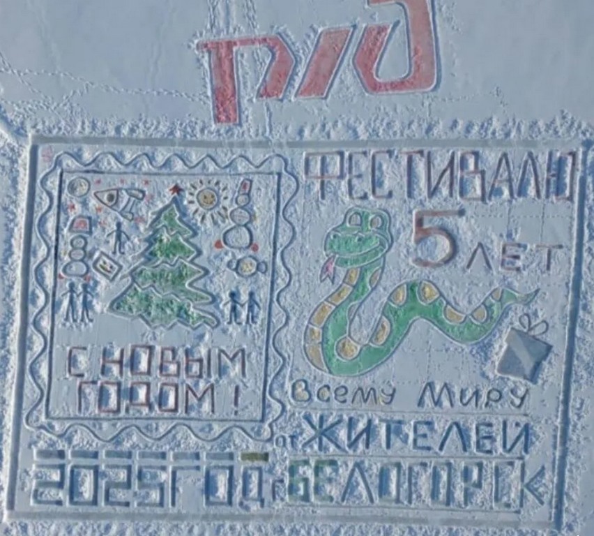 Еще одну ледовую открытку посвятили белогорцы Новому 2026 году. Активные жители города создали цветную композицию, размером 35 на 25 метров, с изображением «2026» и символом наступающего года. В мероприятии приняли участие корпоративные волонтёры ОАО «РЖД», члены Общественного совета города, представители Совета отцов, преподаватели и студенты АМЦФПК.