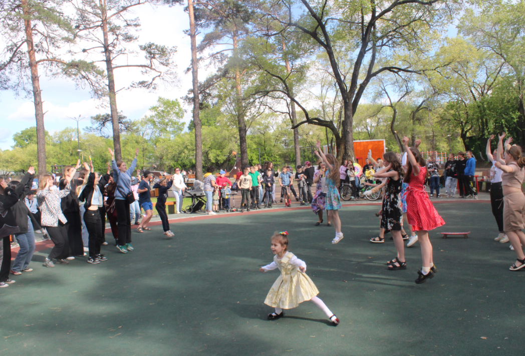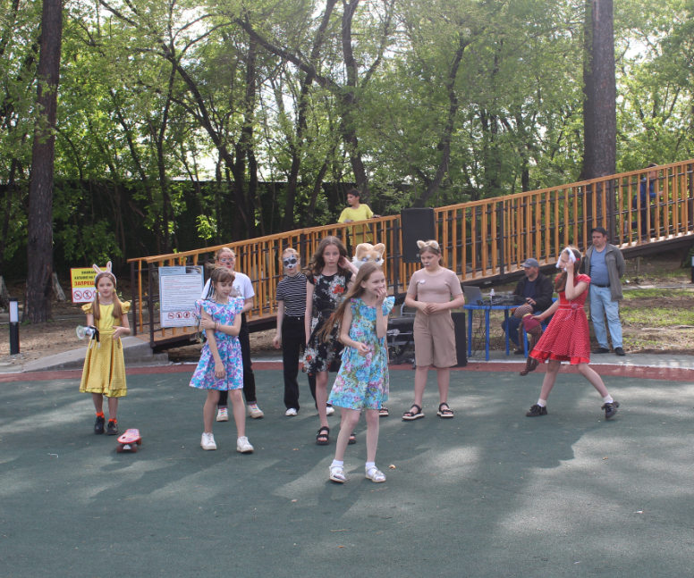 В День защиты детей «Девицы-мастерицы», занимающиеся в Библиомастерской, продемонстрировали свои наряды, которые сшили с помощью модного журнала «Бурда» из отрезов тканей с цветочными мотивами.