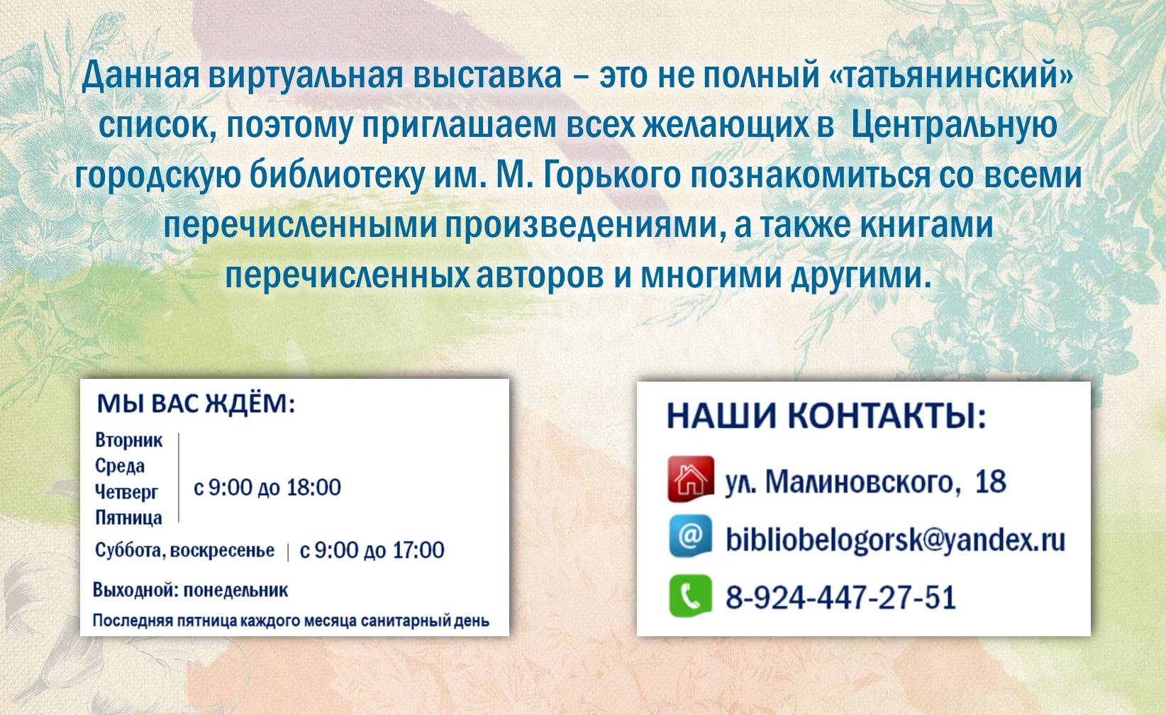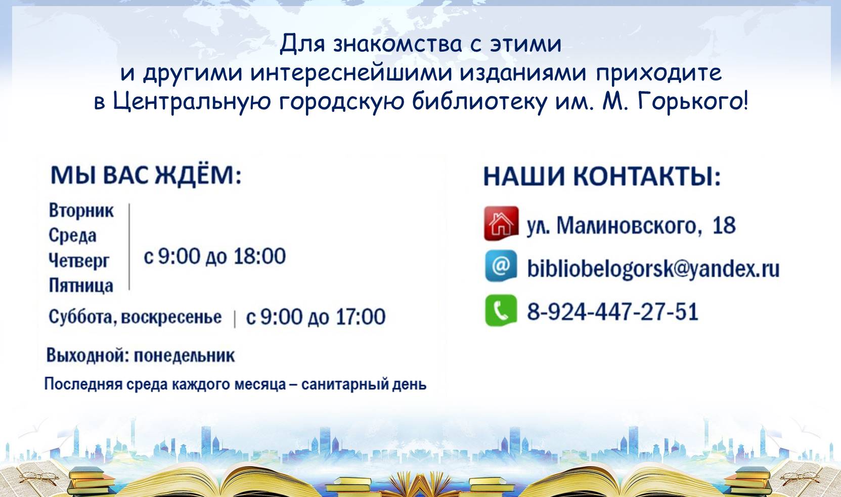 • Email : bibliobelogorsk@yandex.ru