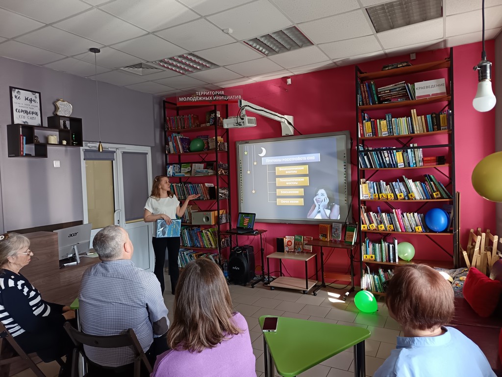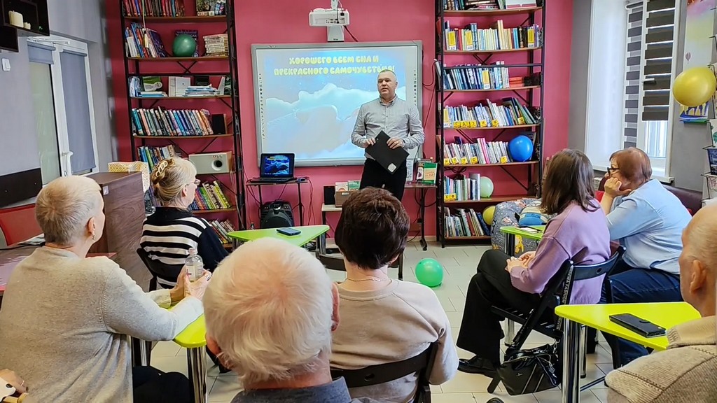 7 марта в центральной городской библиотеке им. М. Горького для участников клуба «Позитив +» прошёл час здоровья «Как найти ко сну дорогу», посвященный Всемирному дню сна. Участникам мероприятия рассказали о фазах сна, их особенностях, причинах и видах нарушений, а также о последствиях бессонницы и методах самопомощи. Подчеркнули важность индивидуального подхода к лечению и дали общие рекомендации для улучшения сна.