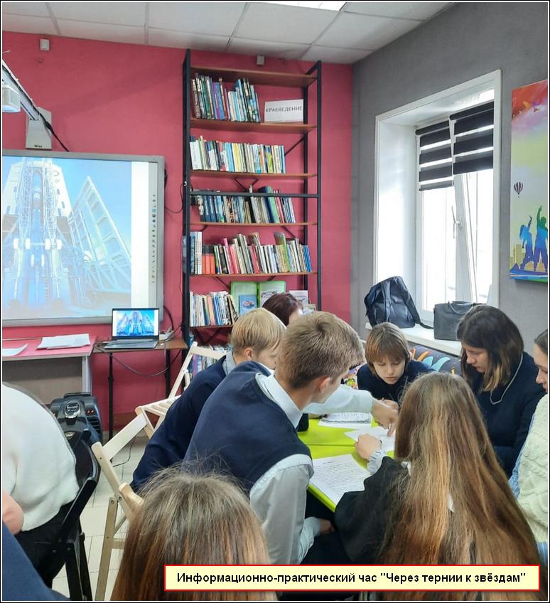 Работа по программе «Дорога на космодром», проделанная в 2022 году, была успешной, и её решили продолжить в 2023 году (http://bibliobel.ru/kollegam/aktualno/item/3035-doroga-na-kosmodrom-programma-po-proforientatsii-dlya-podrostkov-i-molodjozhi). В этом году состоялись такие мероприятия, как интеллектуальная игра «Лишних знаний не бывает» и информационный час «Космос далёкий и близкий», на сайте опубликованы: видео-презентация «Алексей Леонов. Первый в космосе» и видео-сообщение «Чайка, долетевшая до звёзд» (к 60-летию первого полета женщины-космонавта В.В. Терешковой в космос).
