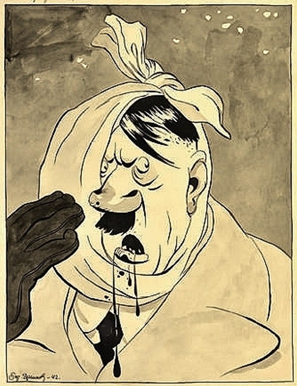 Ещё до войны в Германии была издана книга с советскими, английскими и американскими карикатурами на Гитлера. Будущий канцлер допустил это, так как считал, что они популяризируют его. Но доподлинно известно, когда немцы приближались к Москве, уже был составлен список для гестапо - всех найти и повесить. В нём значились диктор Левитан, Кукрыниксы и Борис Ефимов.