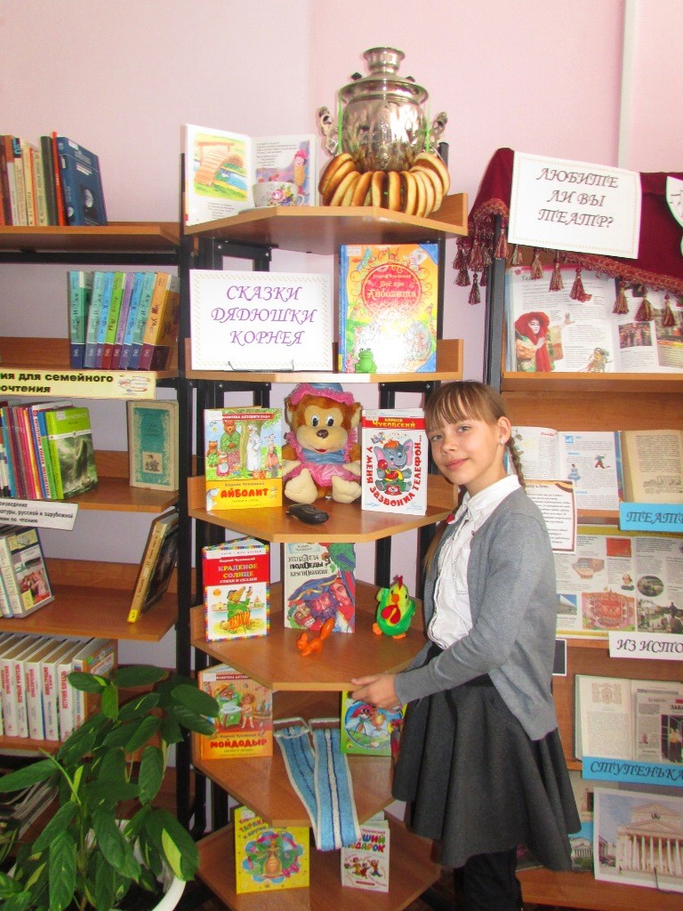Участница акции Паркина Ульяна Владимировна читала вслух произведения К. И. Чуковского: сказки «Топтыгин и Лиса», «Айболит и воробей», «Топтыгин и Луна». Затем ведущий программы провела для детей викторину «Любимые сказки К. Чуковского». Дети активно и дружно отвечали на вопросы, отгадывали загадки, расшифровывали имена сказочных героев, сопоставляли героя сказки с поступком, который он совершил. Далее ребят познакомили с книжной выставкой «».