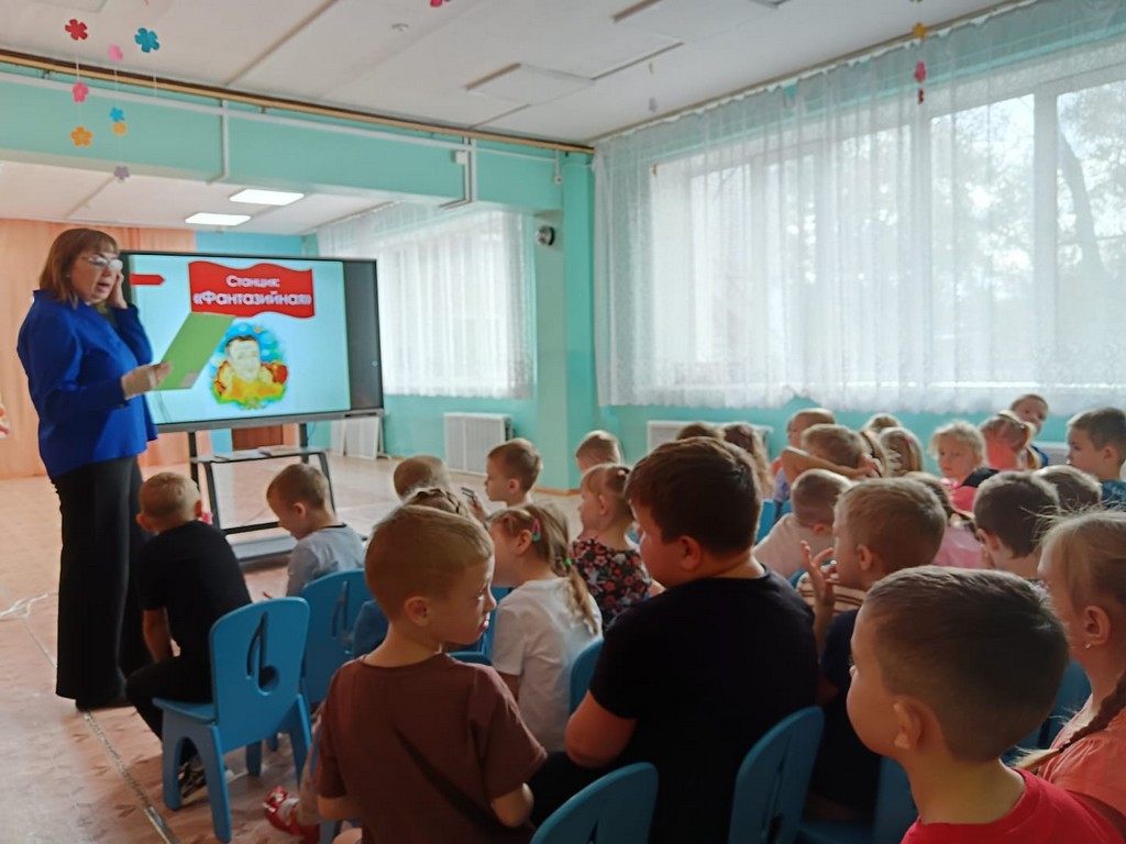 В ходе мероприятия ребята отправились в путешествие по сказкам Дж. Родари на сказочном поезде «Голубая стрела» с посещением различных станций.