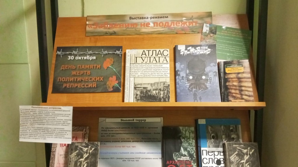 К этой памятной дате в библиотеке-филиале №1 оформлена книжная выставка - реквием "Забвению не подлежит", которая продолжит свою работу с 23 по 31 октября 2025 года.