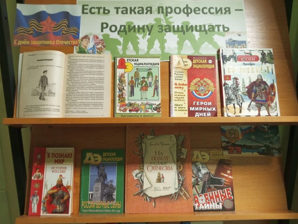 18 февраля 2026 года ко Дню защитников Отечества в библиотеке филиале №1 оформлена книжная выставка «Есть такая профессия – Родину защищать».