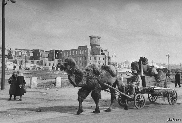 Во время тяжелейших боёв под Сталинградом в Астрахани формировалась 28-я резервная армия, укомплектованная пушками. Однако двигаться в путь было невозможно: во всей округе — ни грузовиков, ни лошадей. Осмотревшись, командование решило привлечь в качестве тягловой силы верблюдов. Местные власти выловили почти всех диких животных, передав их воинским частям. Солдатам пришлось нелегко, многие видели двугорбых животных в первый раз, а здесь предстояло управлять такой махиной на передовой. Да и свой скверный характер верблюды проявляли при каждой попытке общения. На помощь пришли мальчишки-пастухи. За короткое время с их помощью красноармейцы обучили животных носить упряжку, возить повозки и полевую кухню, тащить орудие, вес которого превышал тонну. Верблюды славились выносливостью, поэтому вместо трёх пар коней, полагающихся для перевозки пушек, запрягали две пары верблюдов.