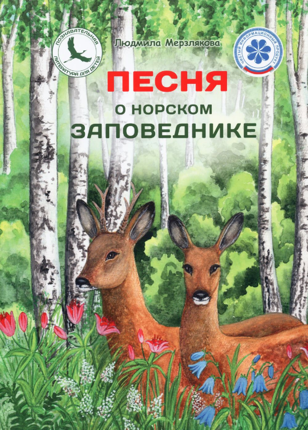 Мерзлякова, Людмила Семеновна. Песня о Норском заповеднике : [стихи для детей младшего и среднего школьного возраста] / Людмила Мерзлякова ; [иллюстрации автора]. – Благовещенск : Царское слово, 2017. – 143 с. : цв. ил. – (Познавательная литература для детей).